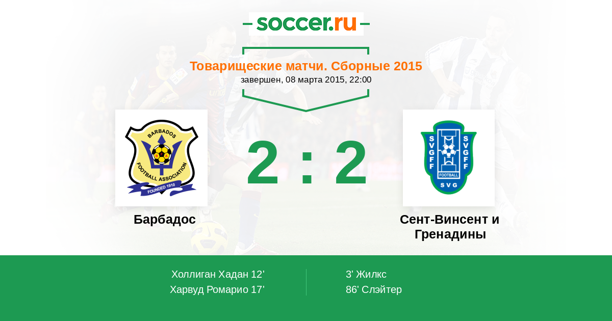 86' ГолСент-Винсент и ГренадиныСлэйтер - 2:2