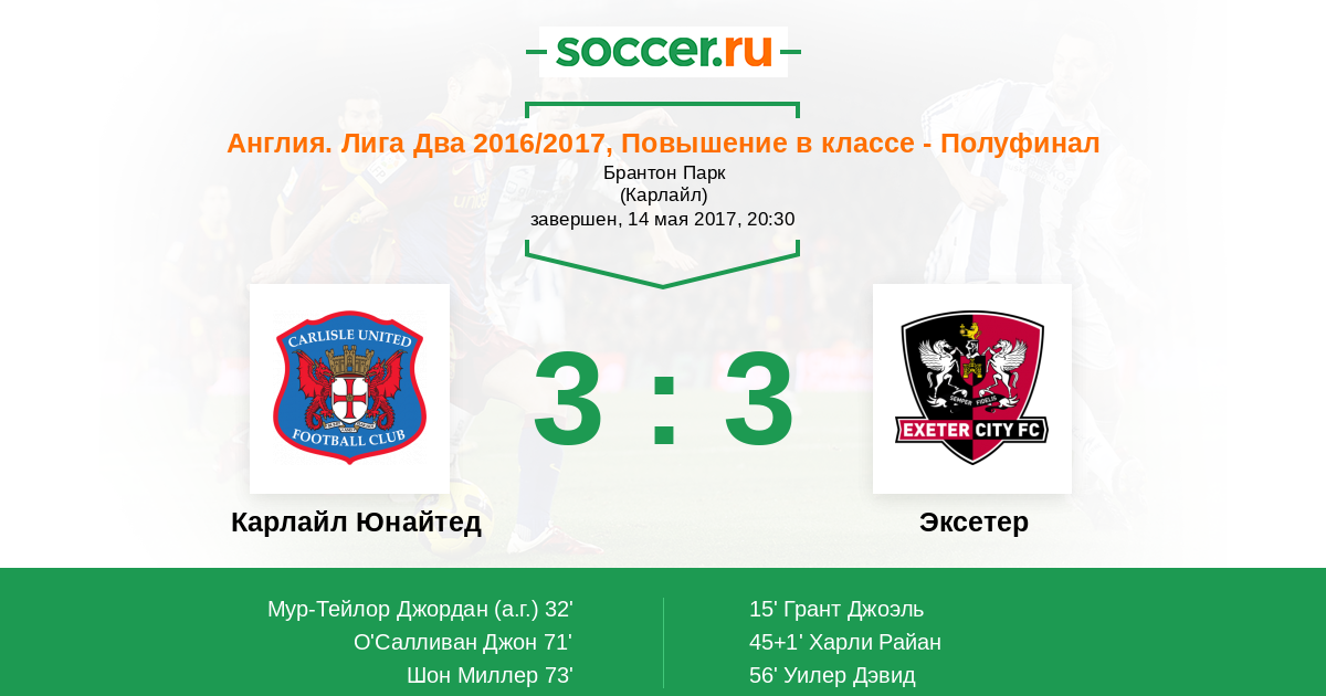 68' ЗаменаЛоготип Карлайл ЮнайтедБэйли Джеймс (16) уходит с поля
