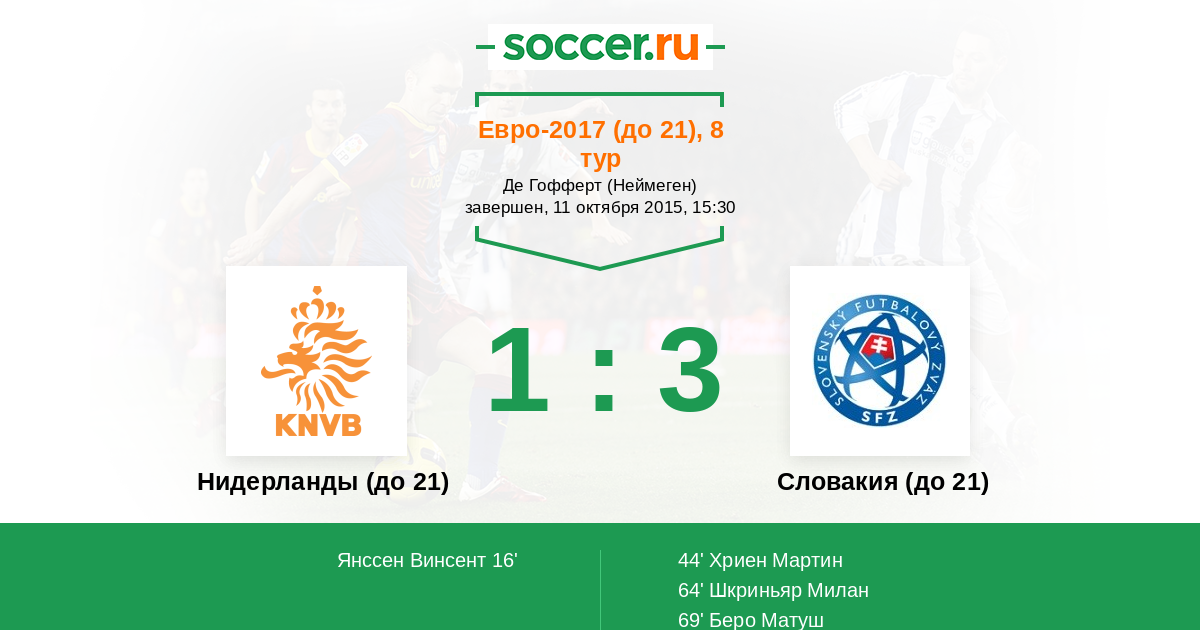Нидерланды (мол.) - Словакия (до 21)