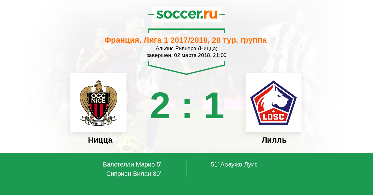 80' ГолЛоготип НиццаСиприен Вилан (25, п) (Логотип НиццаСуке Арно (2)) - 2:1