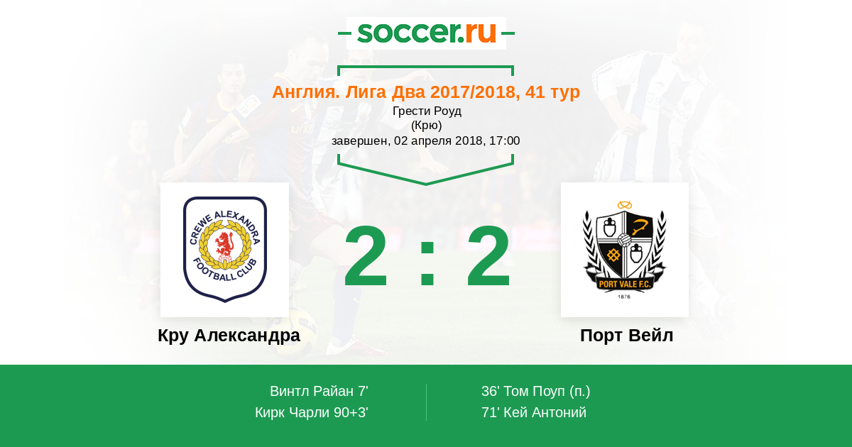 90+3' ГолЛоготип Кру АлександраКирк Чарли (20) - 2:2