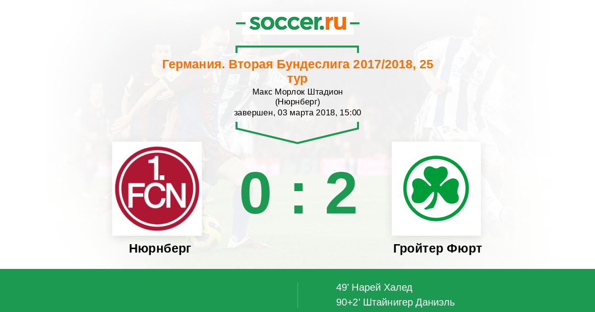 49' ГолЛоготип Гройтер ФюртНарей Халед (21) - 0:1