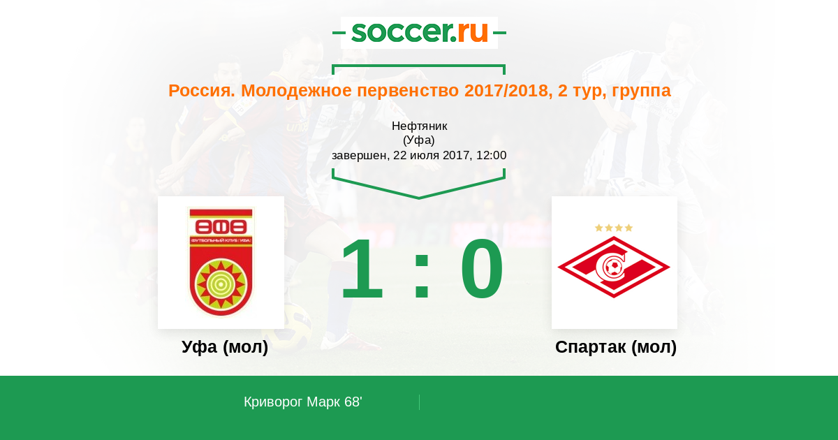 68' ГолЛоготип Уфа (мол)Криворог Марк (51) - 1:0