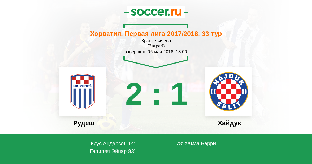 78' ГолЛоготип ХайдукХамза Барри (5) - 1:1