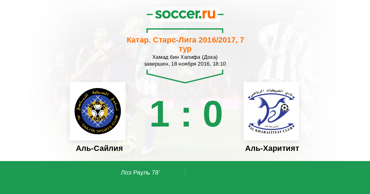 78' ГолЛоготип Аль-СайлияЛоэ Рауль (23) - 1:0