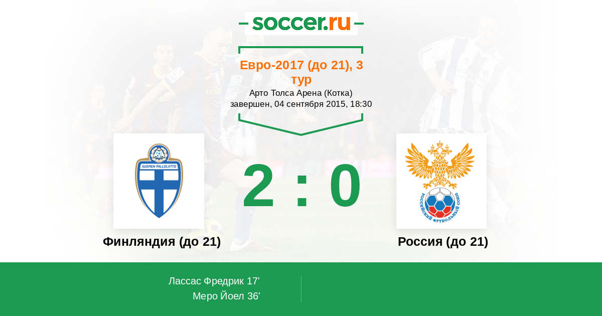 36' ГолФинляндия (до 21)Меро Йоел - 2:0