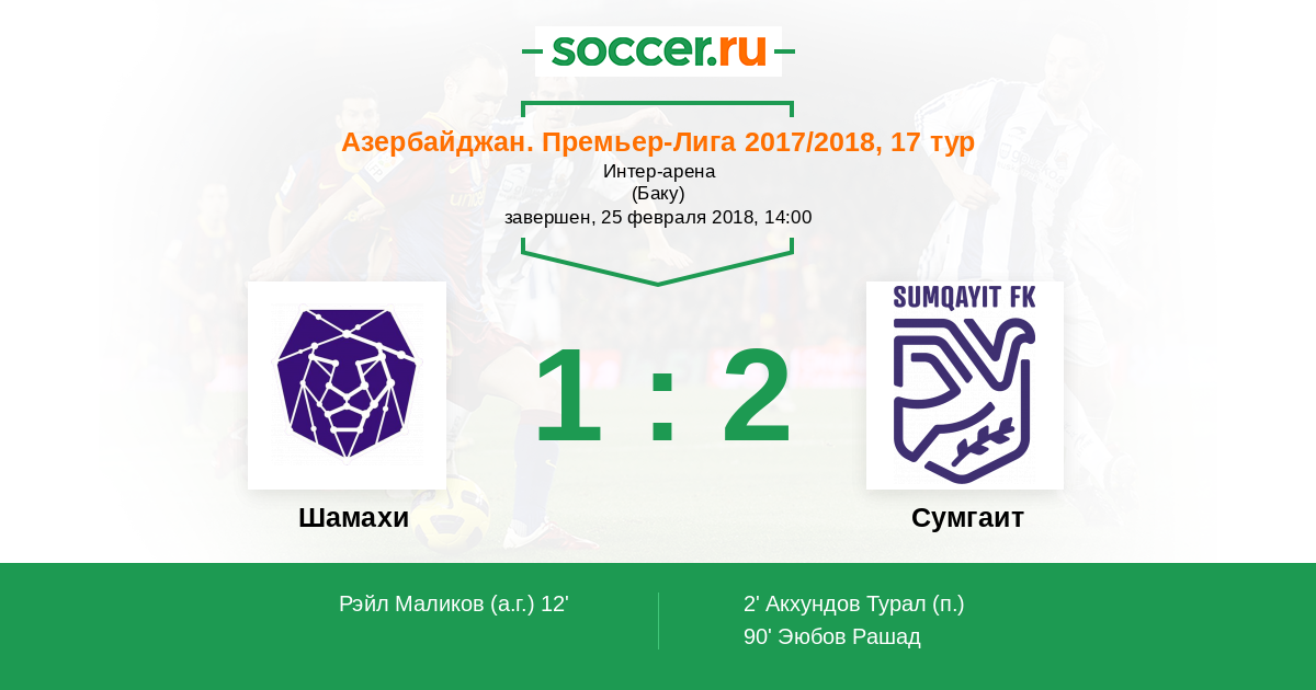 90' ГолЛоготип СумгаитЭюбов Рашад (32) - 1:2