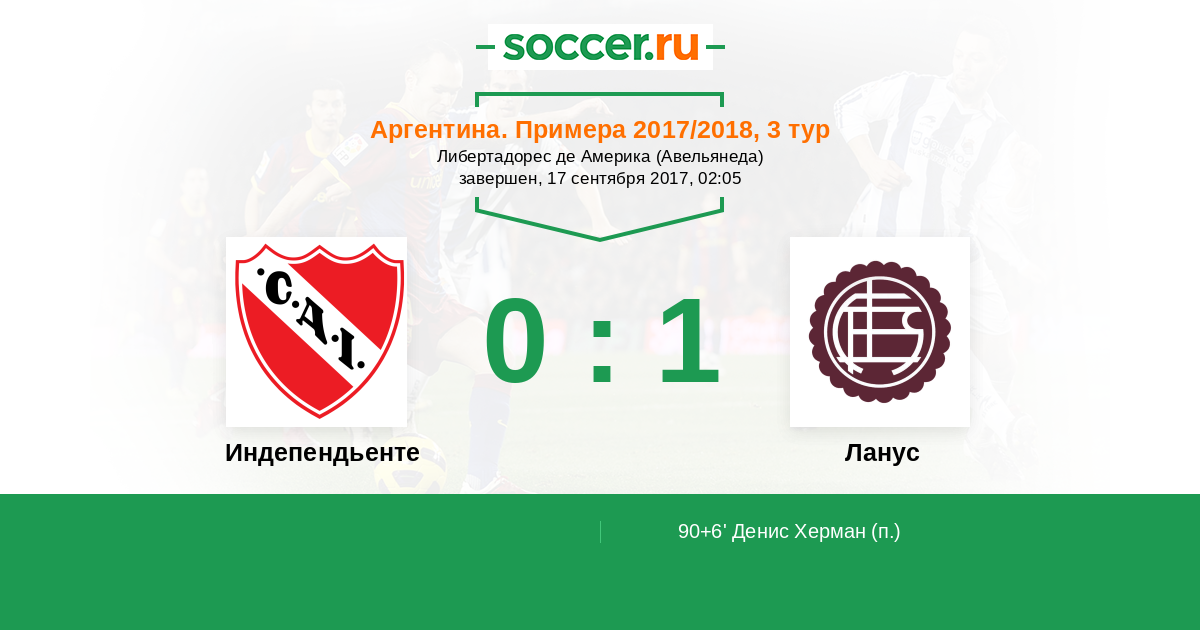 90+6' Гол с пенальтиЛоготип ЛанусДенис Херман (17) - 0:1 (П)