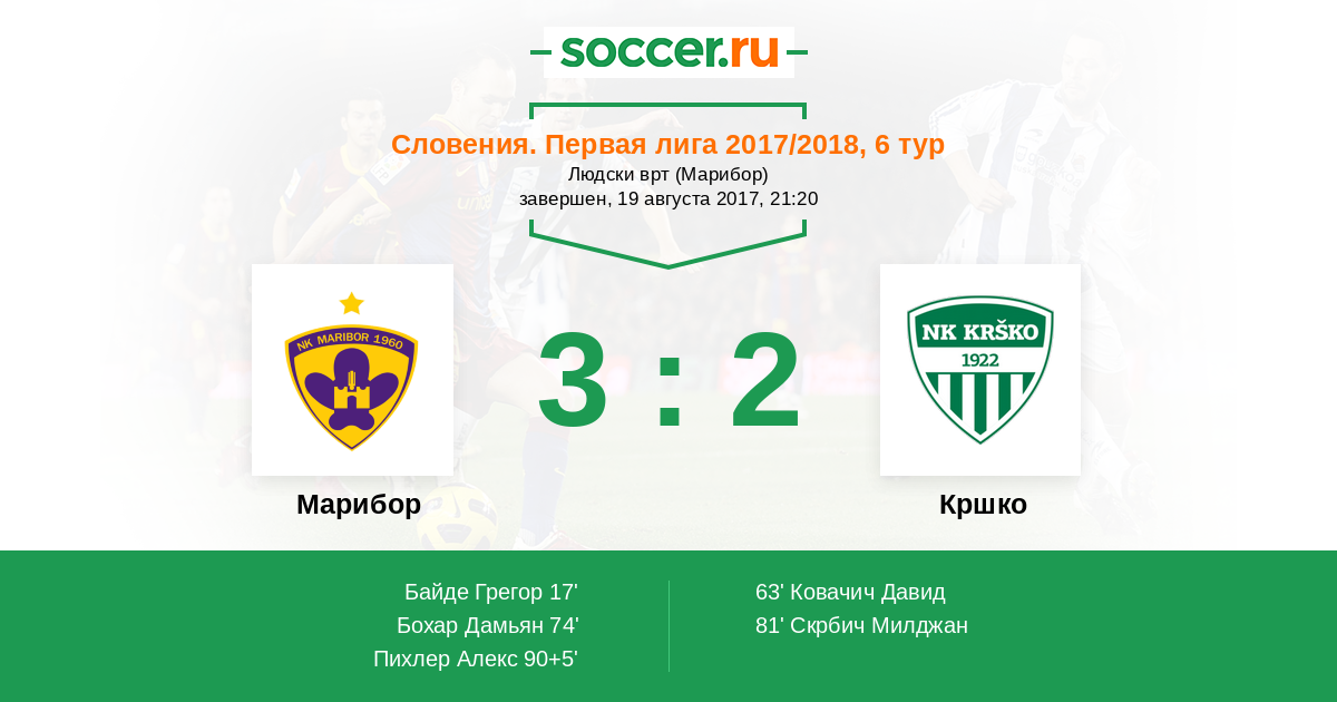 17' ГолЛоготип МариборБайде Грегор (20) - 1:0
