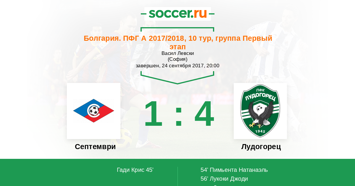 45' ГолЛоготип СептемвриГади Крис (19) - 1:0