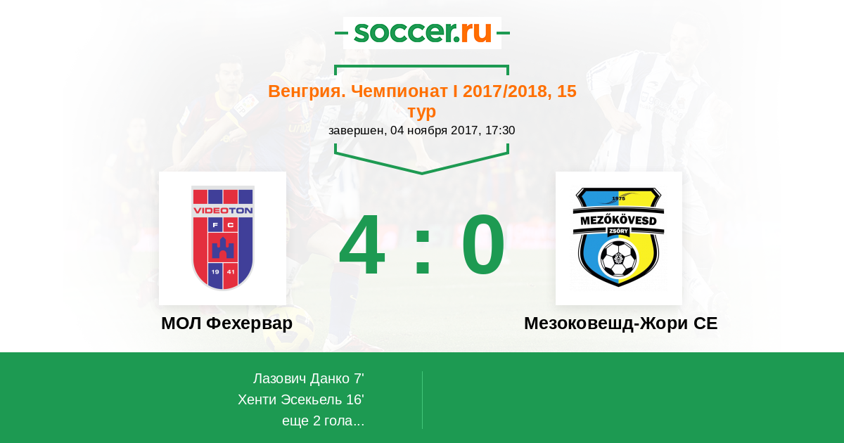 36' ГолЛоготип МОЛ ФехерварЩепович Марко (44) - 3:0