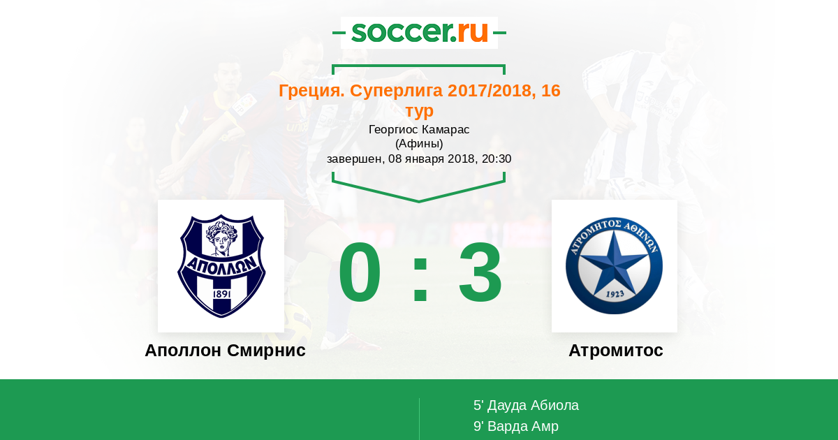 5' ГолЛоготип АтромитосДауда Абиола (27) - 0:1
