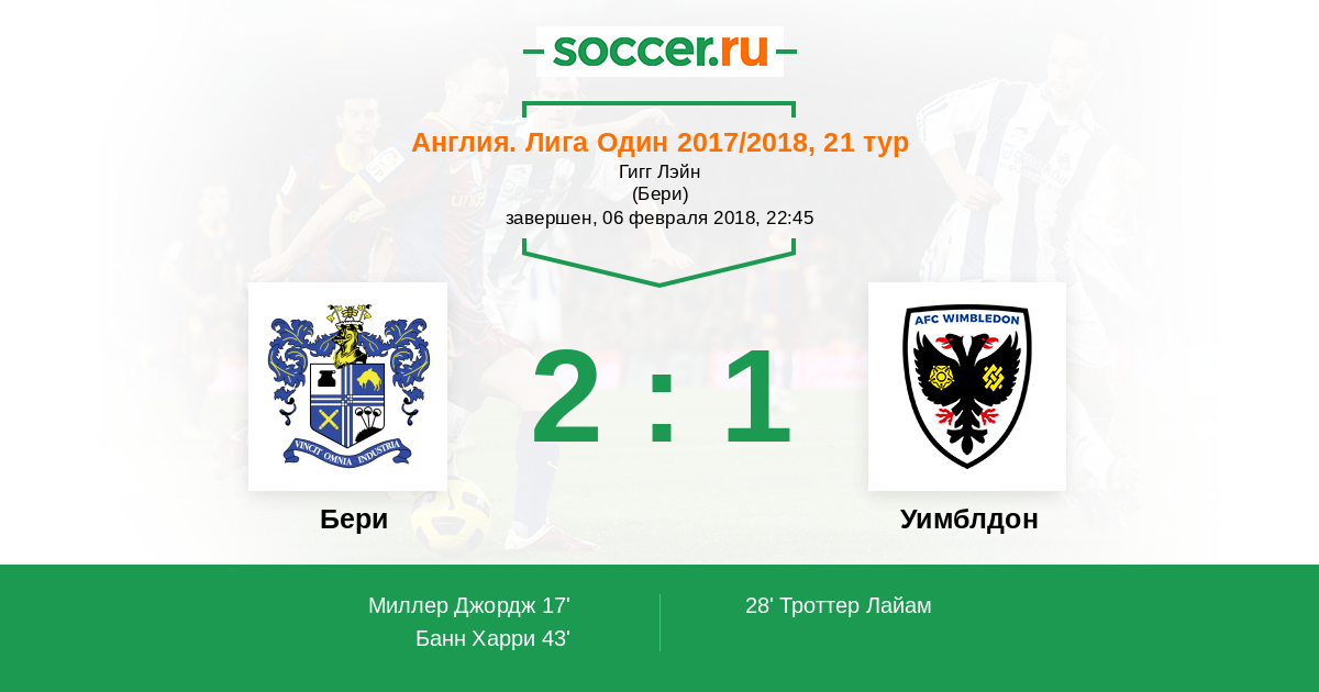 28' ГолЛоготип УимблдонТроттер Лайам (14) - 1:1