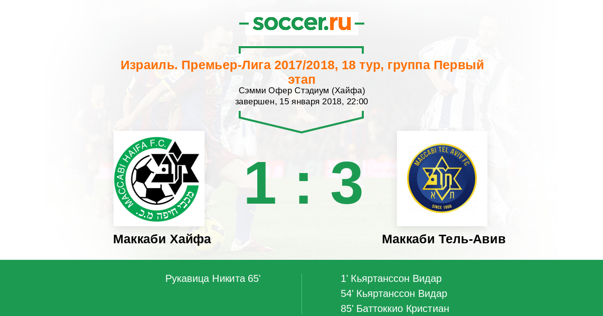 60' ЗаменаЛоготип Маккаби ХайфаКехат Роэль (19) уходит с поля