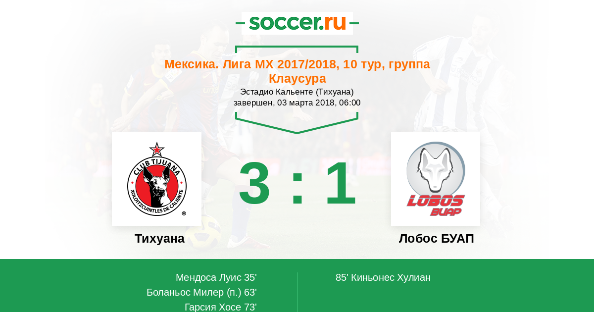 77' ЗаменаЛоготип ТихуанаМендоса Луис (26) уходит с поля