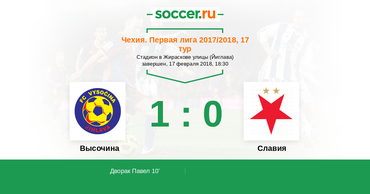 10' ГолЛоготип ВысочинаДворак Павел (28) - 1:0