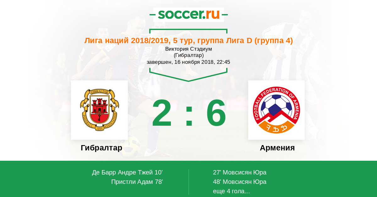 72' ЗаменаГибралтарЭрнандес Антони (18, н) уходит с поля