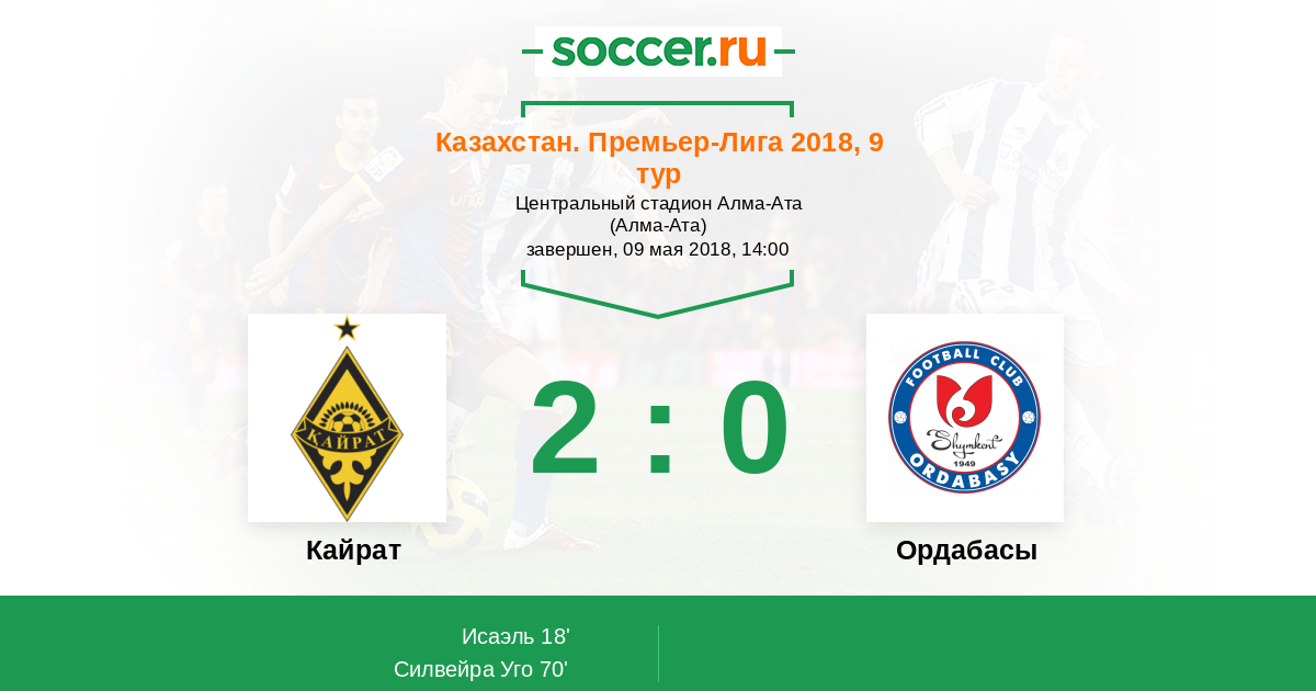 18' ГолЛоготип КайратИсаэль - 1:0