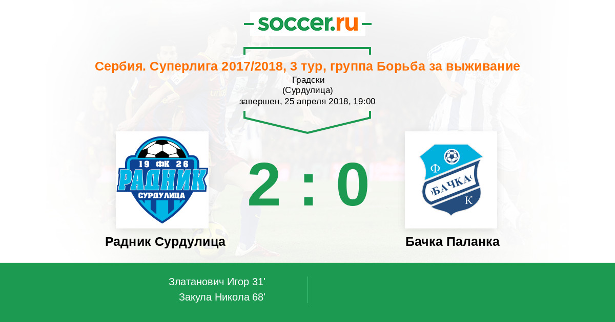 Радник Сурдулица - Бачка Паланка