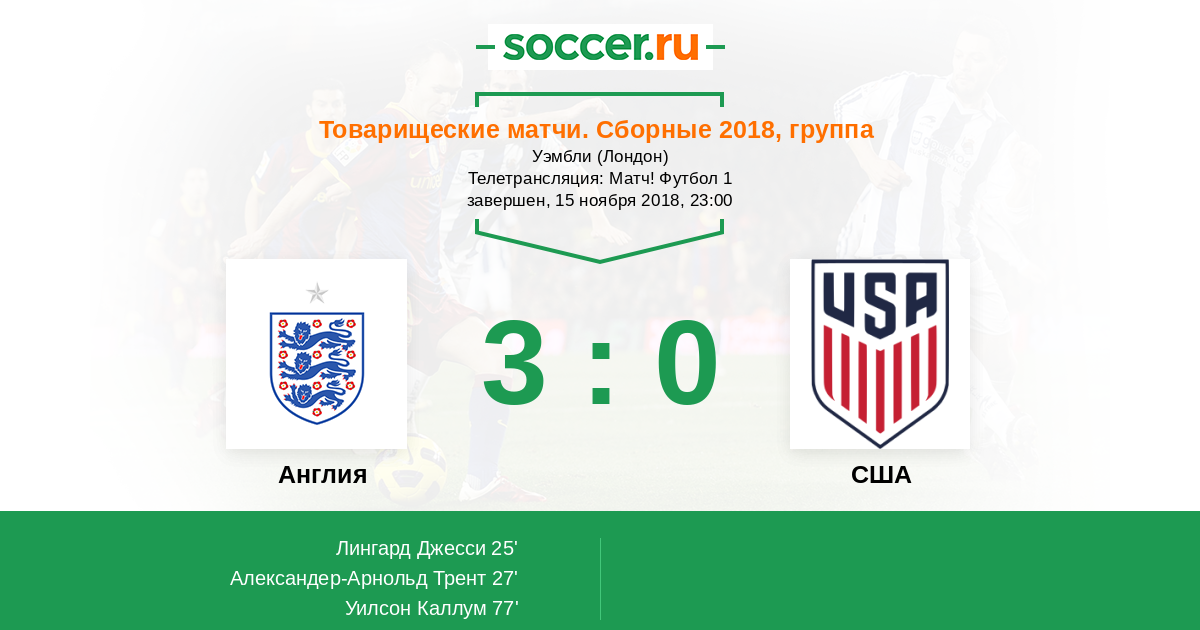 77' ГолАнглияУилсон Каллум (9, н) (АнглияДелф Фабиан (4, п)) - 3:0