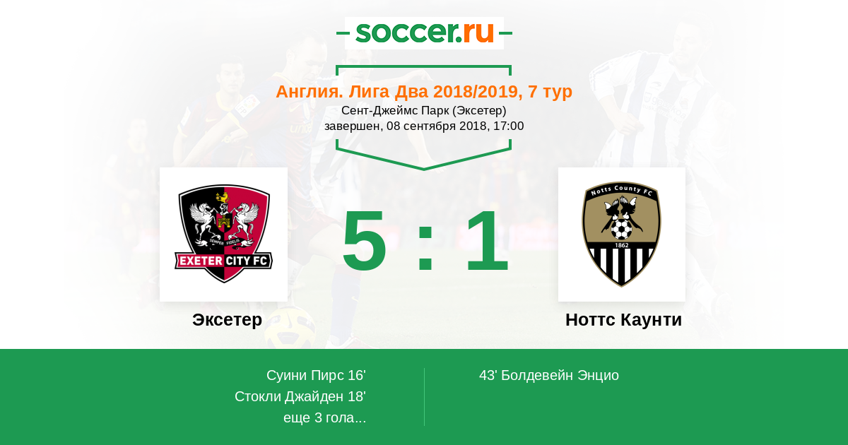 16' ГолЛоготип ЭксетерСуини Пирс (2) (Логотип ЭксетерХолмс Ли (10)) - 1:0