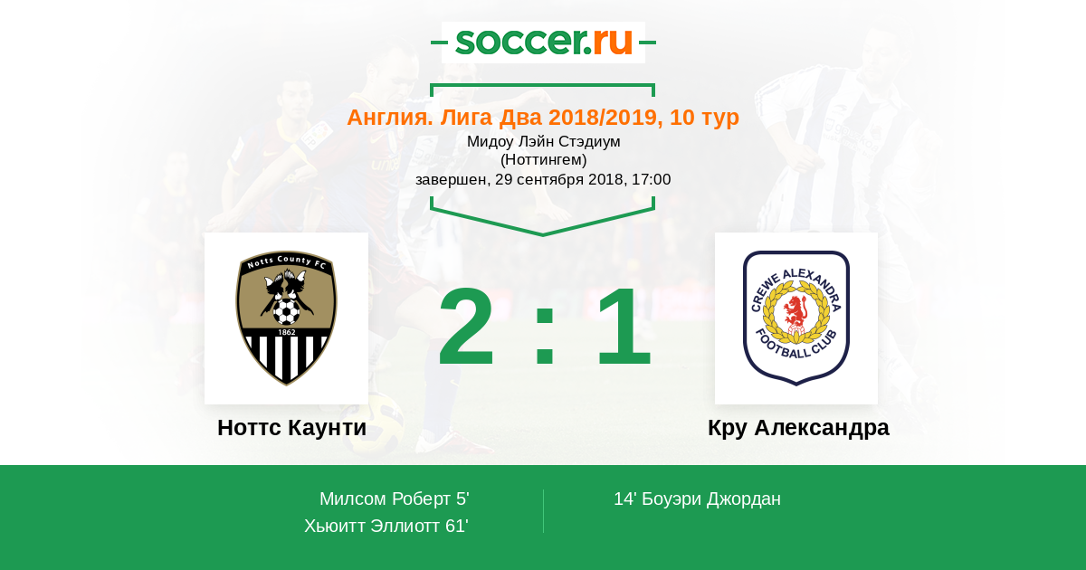 33' Желтая карточкаЛоготип Ноттс КаунтиМилсом Роберт (24) получил ж.к.