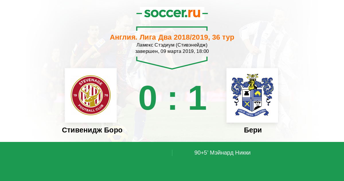 90+5' ГолЛоготип БериМэйнард Никки (36) - 0:1