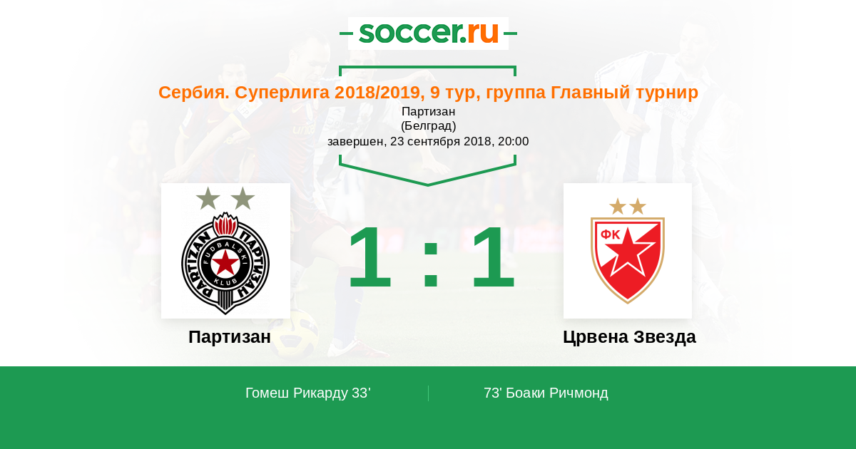 33' ГолЛоготип ПартизанГомеш Рикарду (11) - 1:0