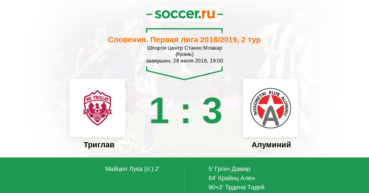 2' Гол с пенальтиЛоготип ТриглавМайцен Лука (99) - 1:0 (П)