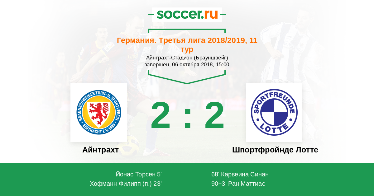 23' Гол с пенальтиЛоготип АйнтрахтХофманн Филипп (9) - 2:0 (П)