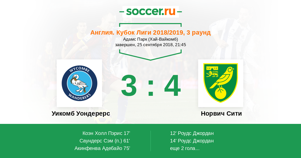 14' ГолЛоготип Норвич СитиРоудс Джордан (11, н) - 0:2