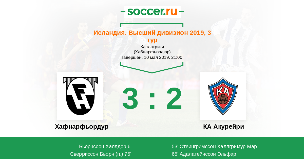 77' Желтая карточкаЛоготип ХафнарфьордурКристьянссон Гудмундур (16) получил ж.к.