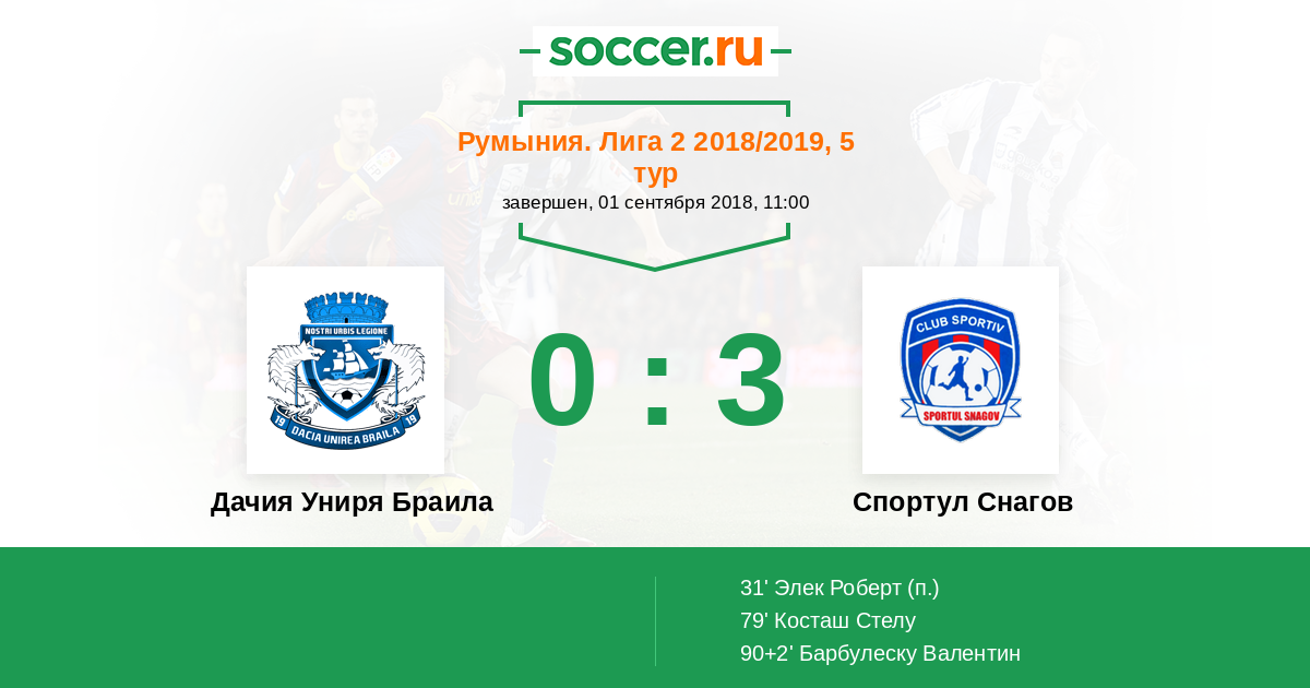 31' Гол с пенальтиЛоготип Спортул СнаговЭлек Роберт - 0:1 (П)