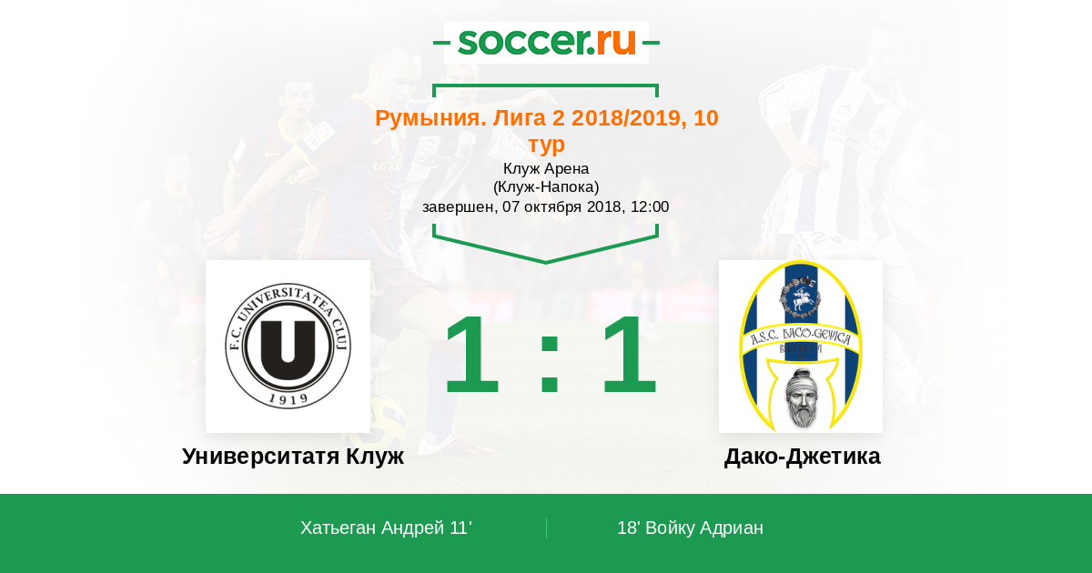 Логотип Университатя КлужДумитреску Адриан выходит на поле