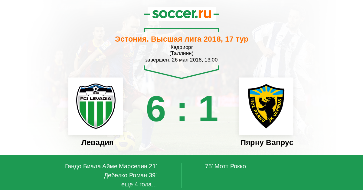 75' ГолЛоготип Пярну ВапрусМотт Рокко (18) - 4:1