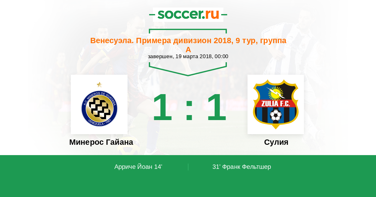 14' ГолЛоготип Минерос ГайанаАрриче Йоан (21) - 1:0