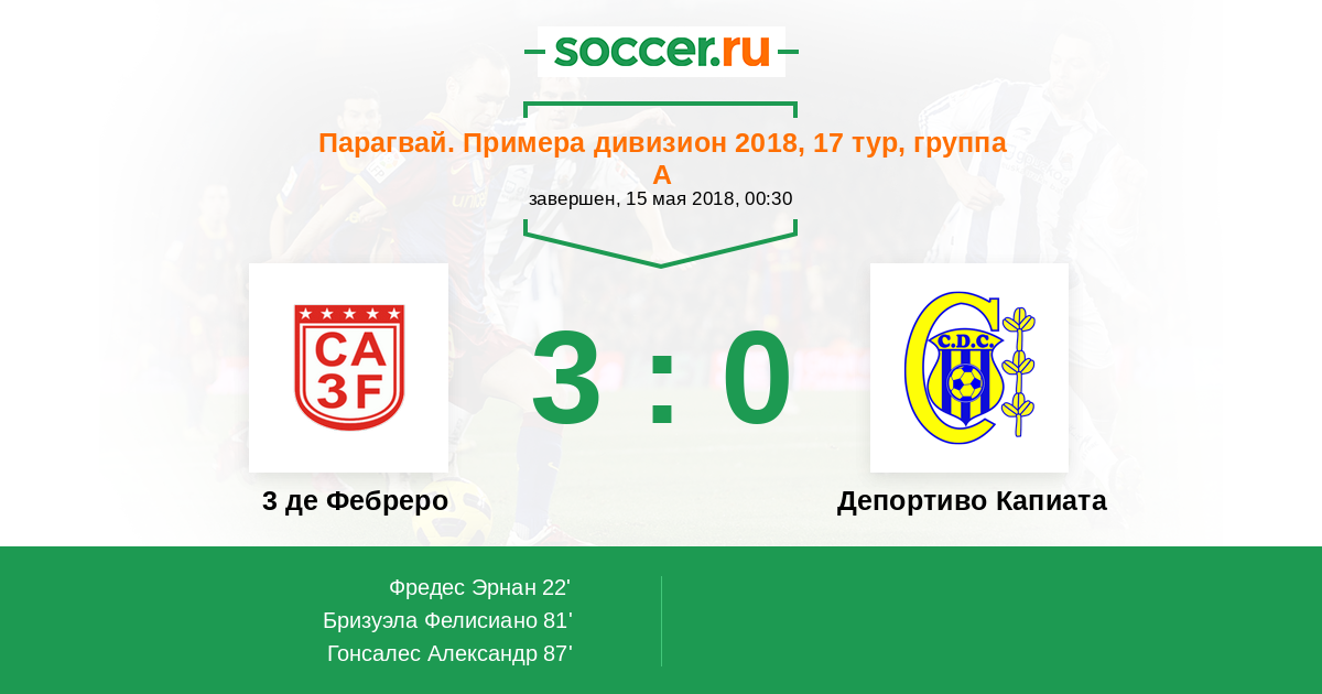 71' ЗаменаЛоготип 3 де ФебрероФредес Эрнан уходит с поля