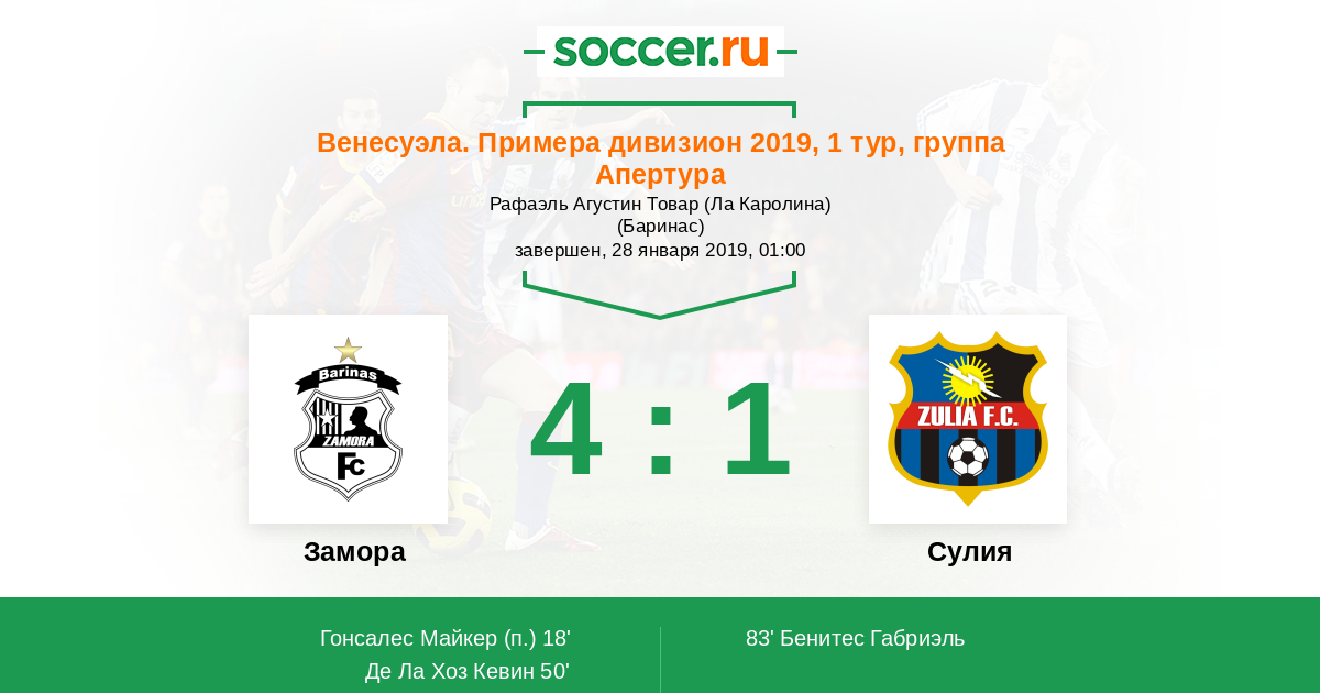 18' Гол с пенальтиЛоготип ЗамораГонсалес Майкер (12) - 1:0 (П)