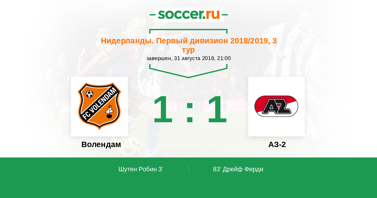3' ГолЛоготип ВолендамШутен Робин (2) - 1:0