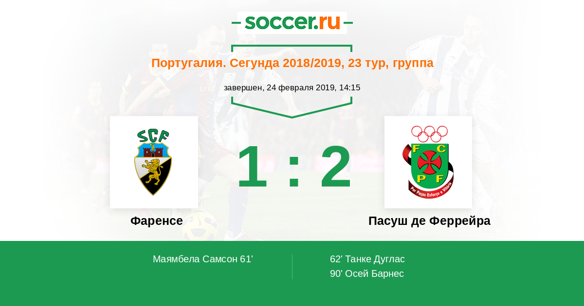 90' ГолЛоготип Пасуш де ФеррейраОсей Барнес (16) - 1:2