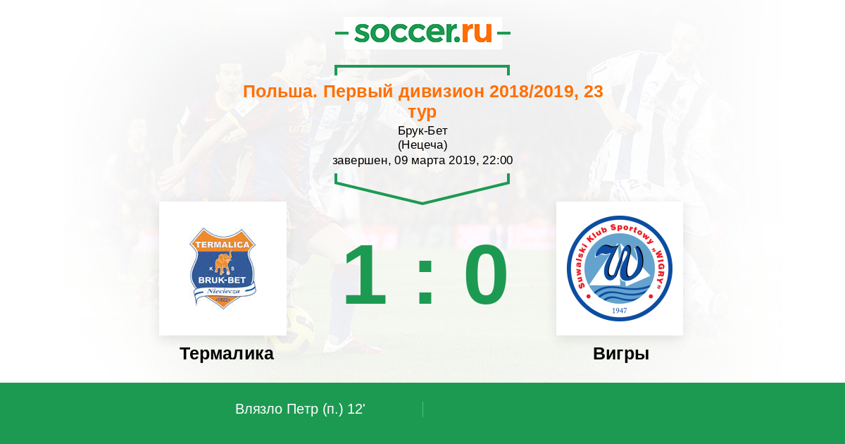 12' Гол с пенальтиЛоготип ТермаликаВлязло Петр - 1:0 (П)