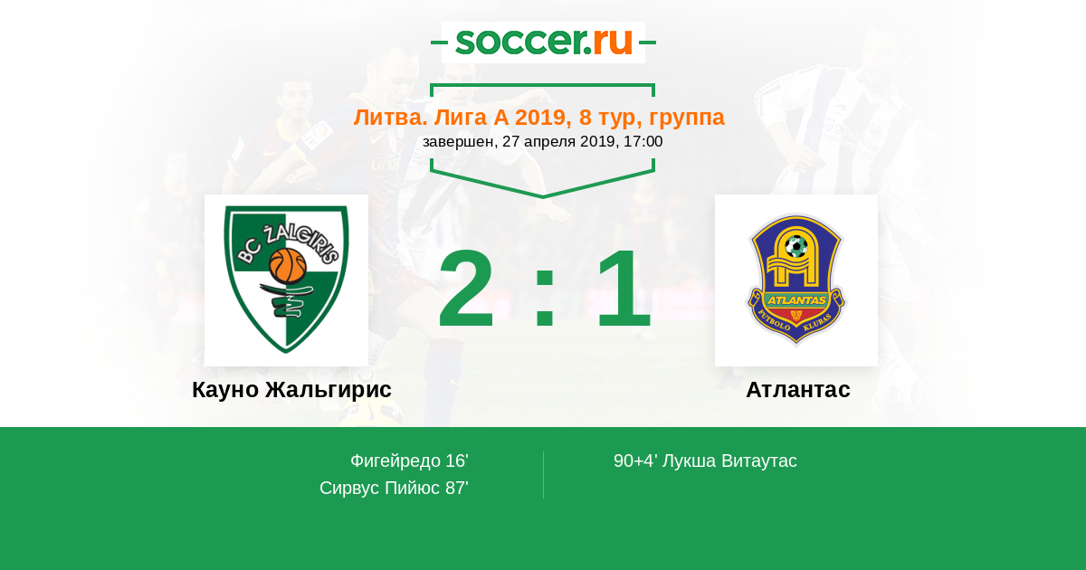 16' ГолЛоготип Кауно ЖальгирисФигейредо (10) - 1:0