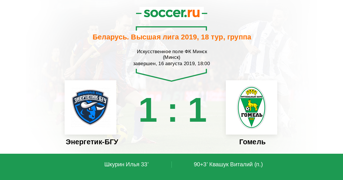 90+3' Гол с пенальтиЛоготип ГомельКвашук Виталий (7) - 1:1 (П)