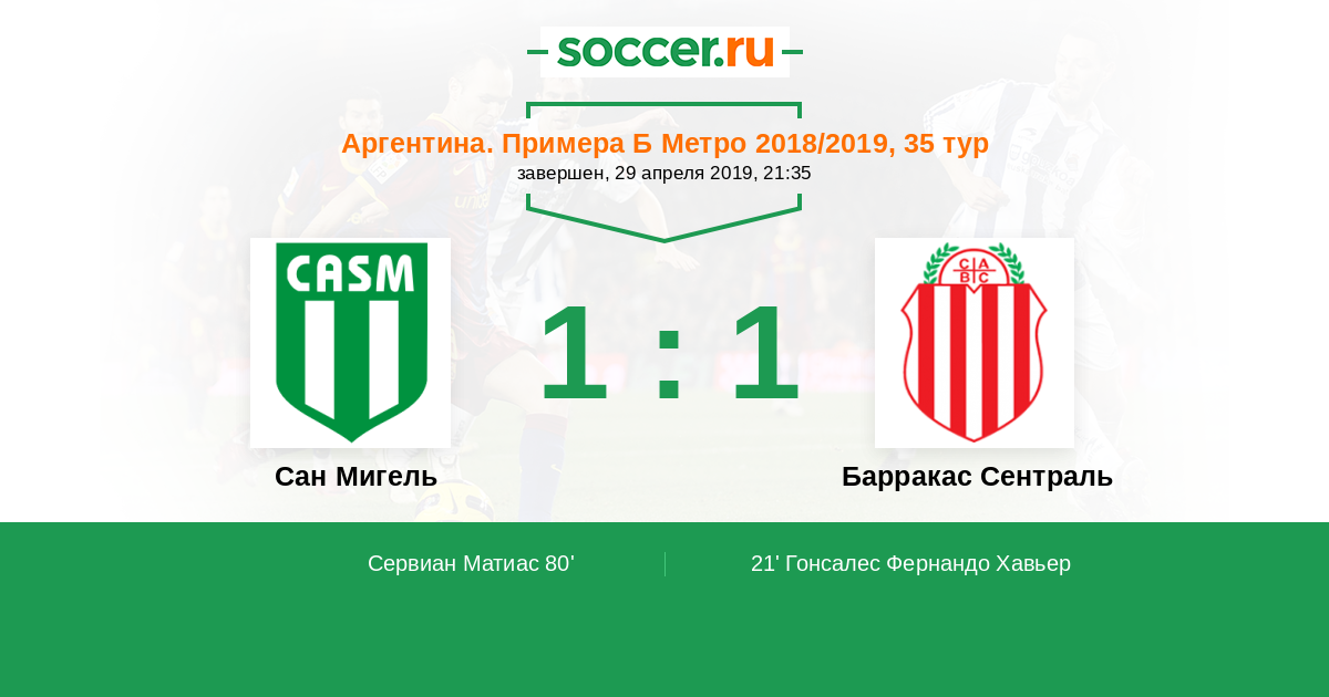 Логотип Сан МигельСервиан Матиас выходит на поле