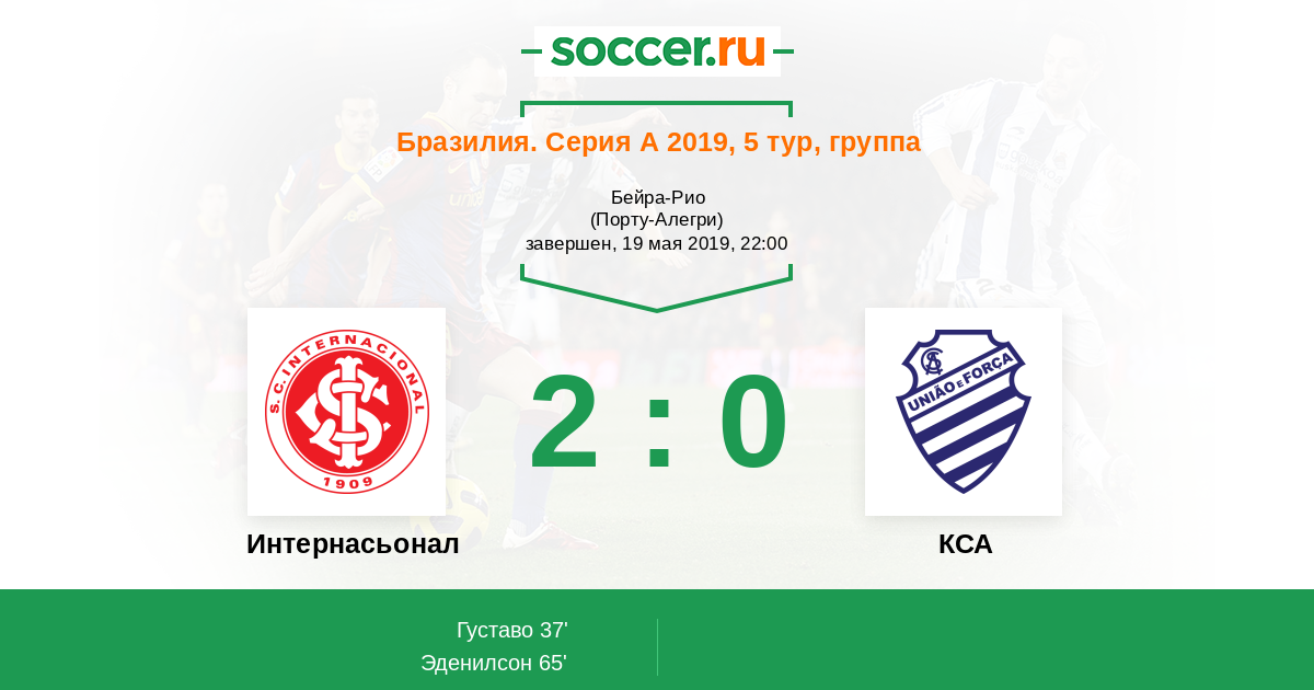 65' ГолЛоготип ИнтернасьоналЭденилсон (8) (Логотип ИнтернасьоналГуставо (33)) - 2:0