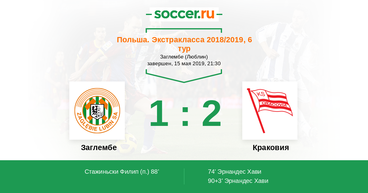 90+3' ГолЛоготип КраковияЭрнандес Хави (19) - 1:2