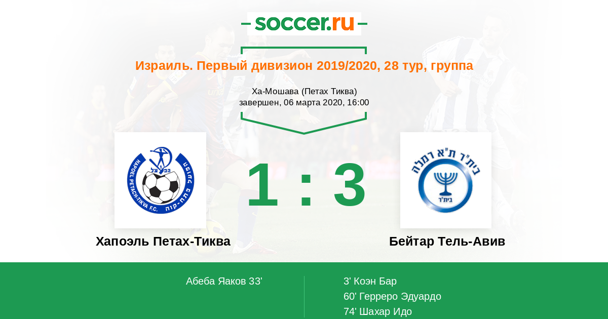 65' ЗаменаЛоготип Хапоэль Петах-ТикваЛеви Рам уходит с поля