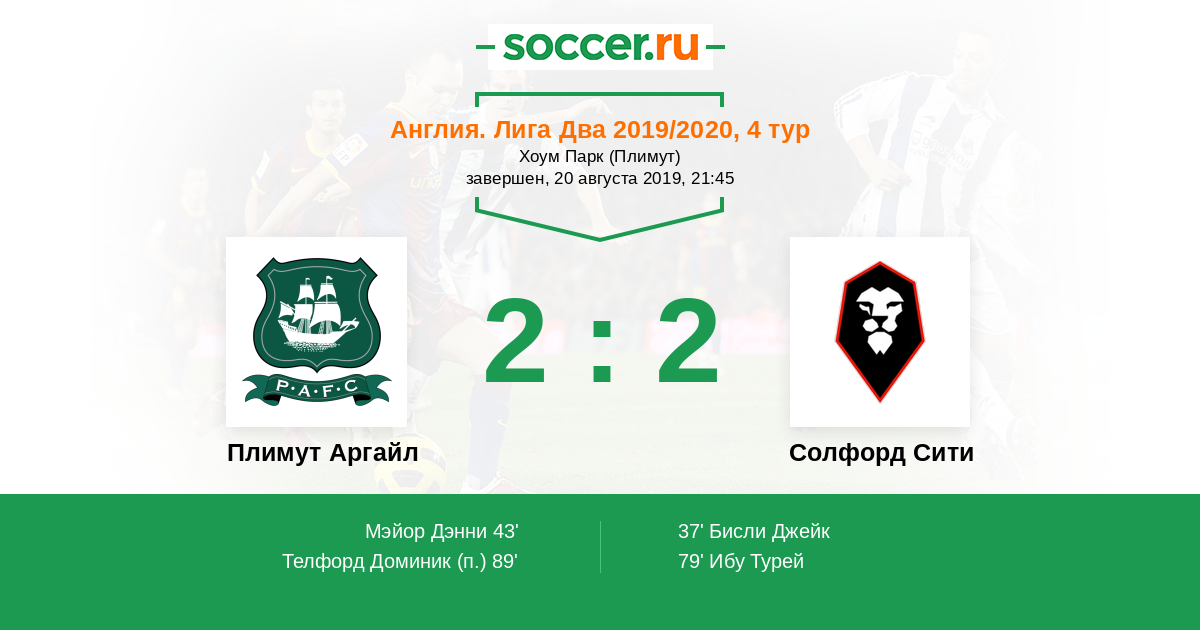 89' Гол с пенальтиЛоготип Плимут АргайлТелфорд Доминик (11) - 2:2 (П)