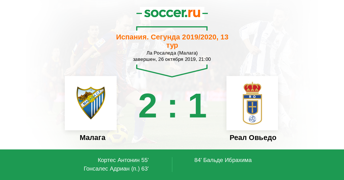 74' Желтая карточкаЛоготип Реал ОвьедоЛоло Гонсалес (21, п) получил ж.к.