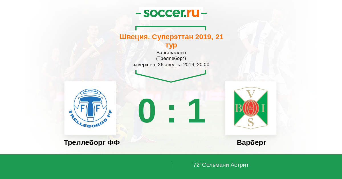 57' ЗаменаЛоготип Треллеборг ФФЙоханссон Хенрик (12) уходит с поля